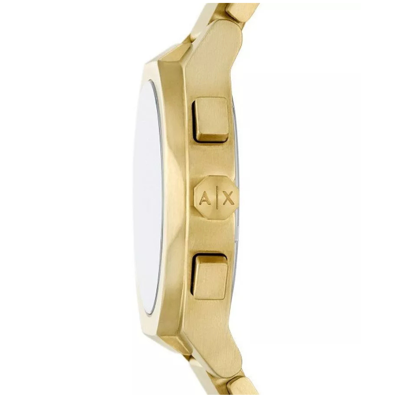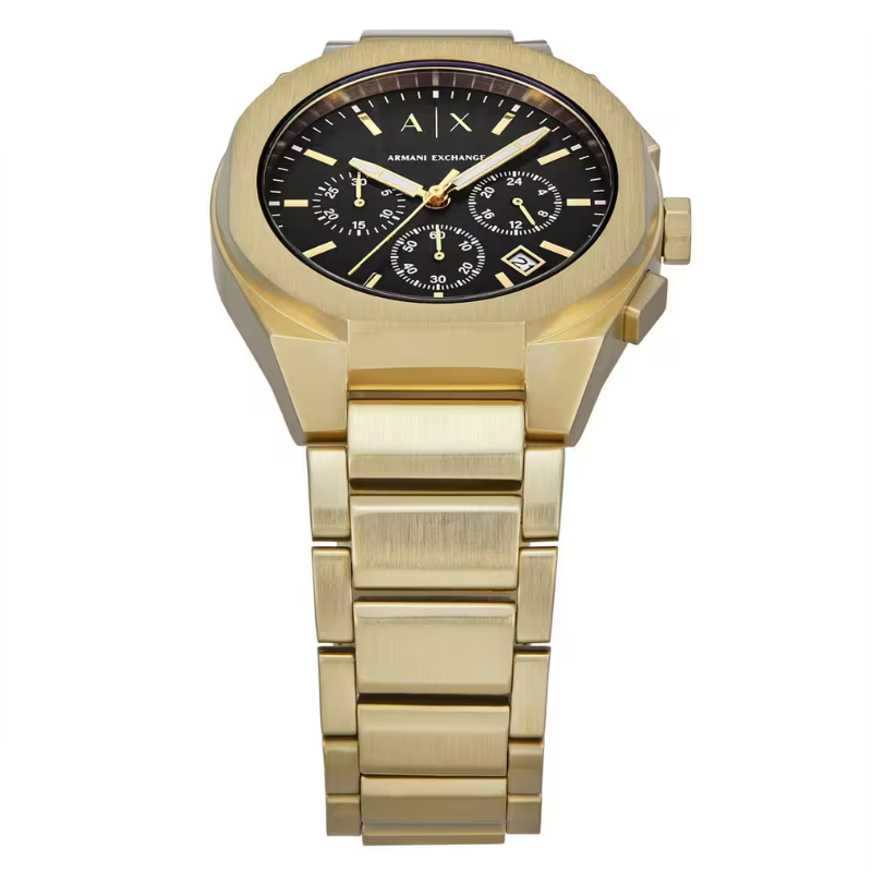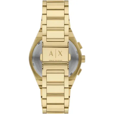 Armani ExchangeRafael Chronograph AX4180 is a men's watch that attracts attention with itsluxurious design. The gold-tone stainless steel envelope and bracelet create anelegant and sophisticated style. The black dial with chronograph function addsa sporty touch to the watch, while the mineral glass effectively protects thedial from scratches. The quartz mechanism ensures precise operation. With awater resistance of up to 50 meters, the watch is an ideal choice for anyoccasion.