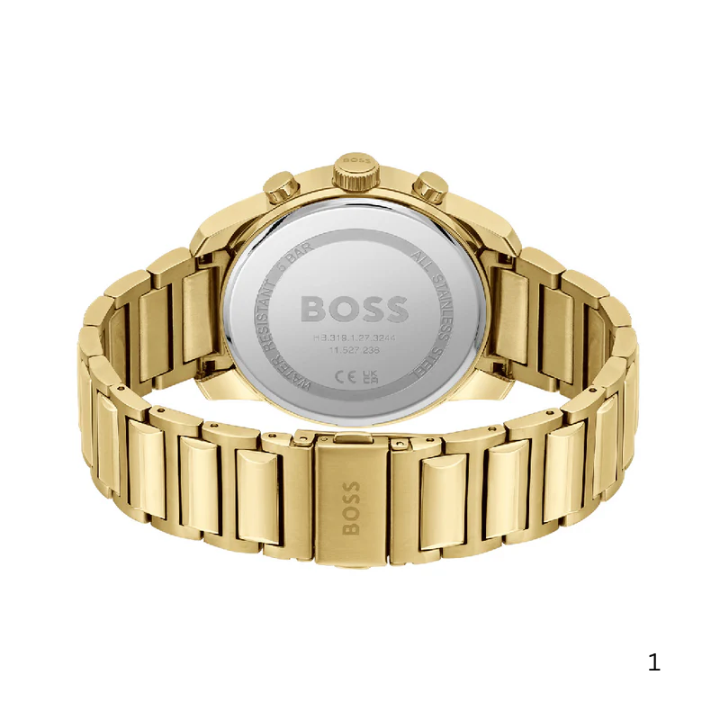 Style arrives effortlessly the moment you wear this smartlydesigned watch from the Trace collection by Hugo Boss. Protected by a mineralglass, the round-shaped dial is nestled in a 44 mm case. It featureschronograph functionality and works on a quartz movement. Moreover, it is waterresistant up to 50 m and is fitted with a deployment clasp that ensures asecure fit on the wrist.