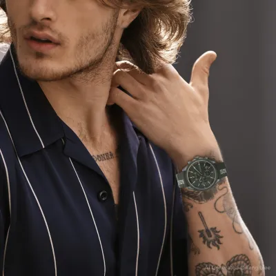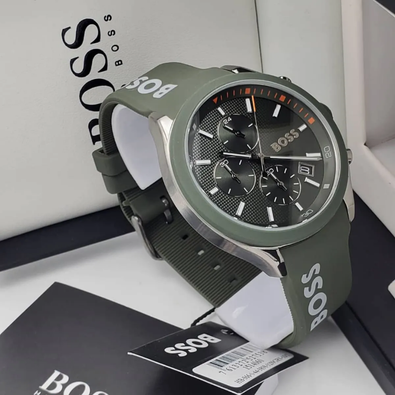 BossVelocity Collection For Men Watch 1514060 An amazing design with Green RoundDial Shape With Stainless Steel Case. The BOSS brand prides itself on modernelegance and its stylish collection of men's and ladies' watches is noexception. Whether treating yourself to a touch of class or letting thatspecial someone in your life know you care with a luxury gift, a BOSS watchmakes a definitive style statement.