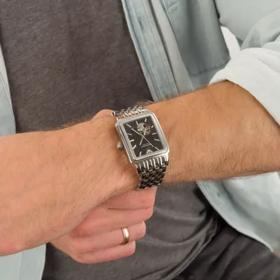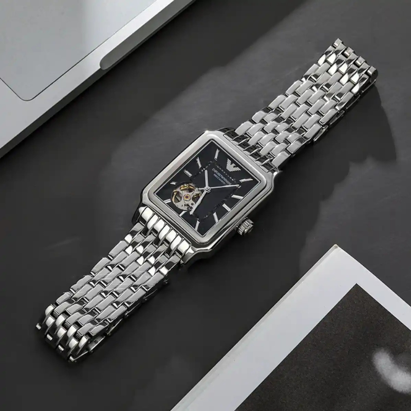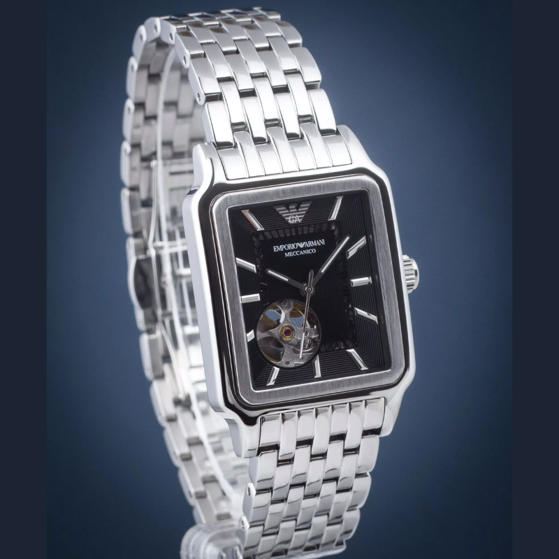 Rectangular envelope and fitted bracelet form a silver watch for men, emporia Armani diego open-heart automatic ar60057. The product is powered by the Miyota 82S0 automatic mechanism on 21 stones. The black open-heart disc has been decorated with guiling effect, and it was covered with a mineral slide for protection against external damage.