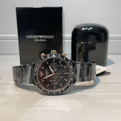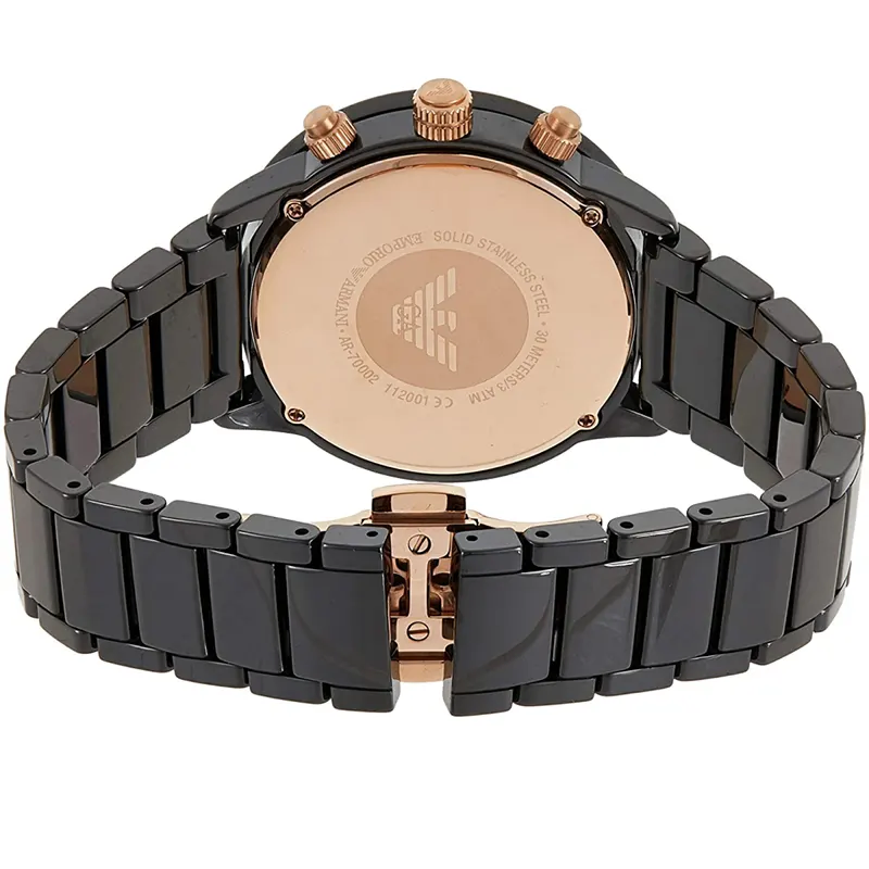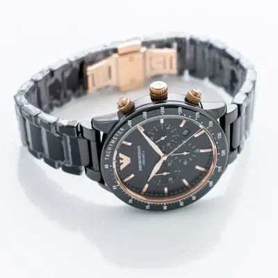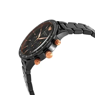 Add a touch ofsophistication to your style with this premium EmporioArmani chronograph watch.Featuring a sleek blackceramic bracelet and apolished rose gold-tone bezel & crown, this timepiece is the perfect balance of elegance and performance.