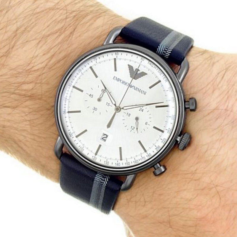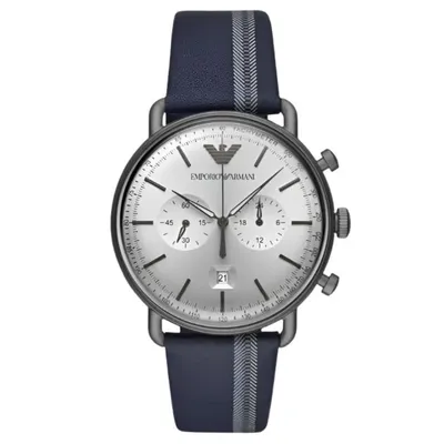 Introducing the timeless Emporio Armani Aviator SilverDial Leather Strap Men's Watch. A luxurious timepiece crafted with precisionand style. The watch features a stunning silver dial, complemented by a sleekleather strap, making it the perfect accessory for any occasion. Elevate yourwardrobe and indulge in pure sophistication.