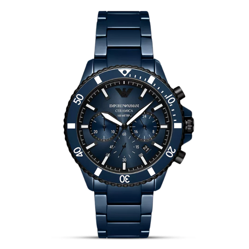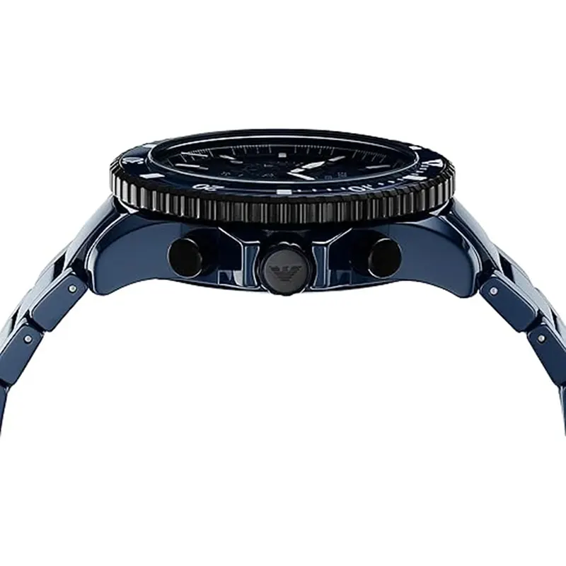 Emporio ArmaniAR70009 showcases a captivating blue dial within a durable 43mm ceramic case.It features a world time function, date display, and luminous markers, blendingelegance with practicality. This stylish timepiece is ideal for moderntravelers who value sophistication and versatility. Discover the Armani WorldExplorer Blue Dial Men's Watch. A perfect blend of luxury, adventure, and style— crafted for modern explorers in Bangladesh.
