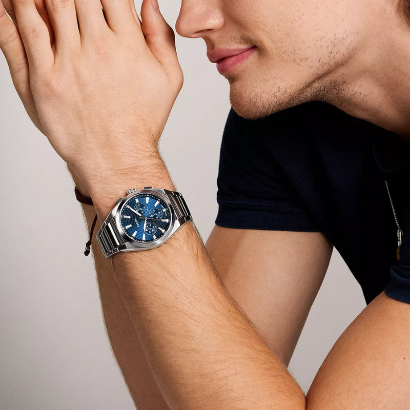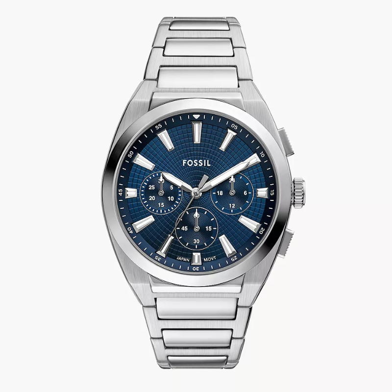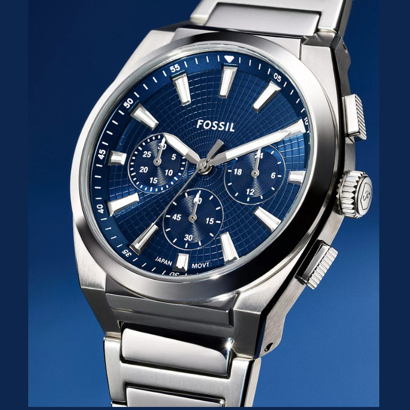 The Fossil FS6104Chronograph Watch features a bold blue dial with multifunction chronograph sub-dials, a durable stainless steel case, and a matching steel bracelet. Designed for style and performance, this modern timepiece offers precise quartz movement and a sleek look perfect for both casual and formal wear.