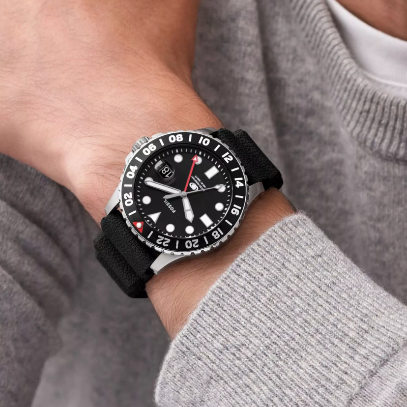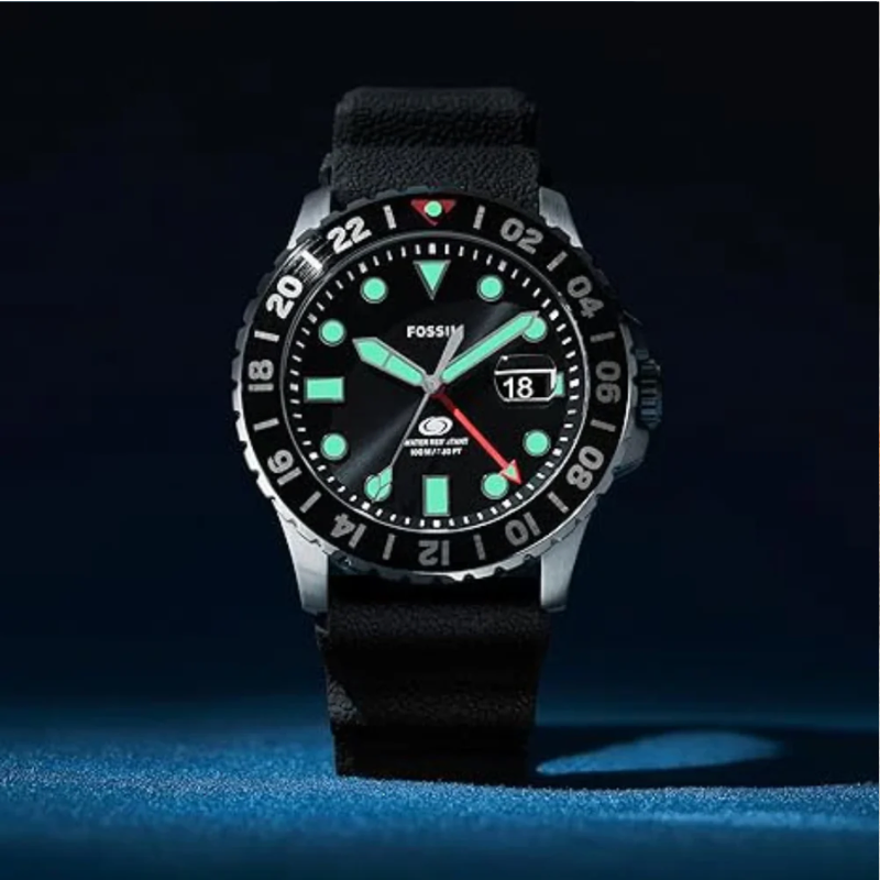 Our most innovativedive-style watch is tested to 100 meters of water resistance and tracks multipletime zones. The Fossil Blue GMT also features a rotating 24-hr. bezel, boldoversized crown and lume indices for easy readability. Made for any adventure.