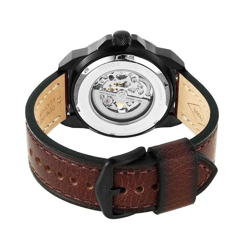ThisFossil Bronson Automatic Men's Watch is the perfect combination of elegance andfunctionality, taking you effortlessly from everyday life to evening events.Its timeless design features a sleek black leather strap and a sophisticatedgunmetal dial with gold accents. With its automatic movement, you can depend onit to keep accurate time wherever you go.