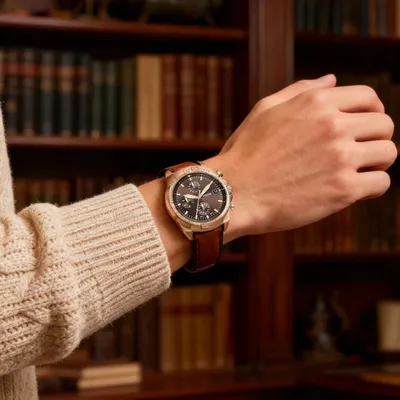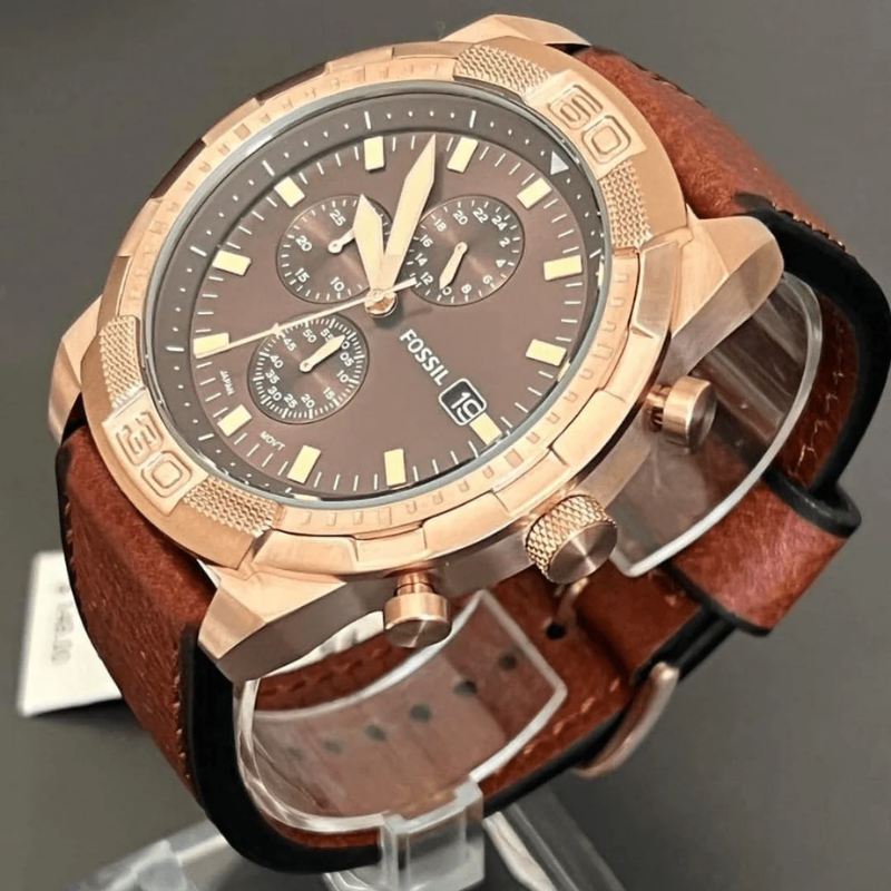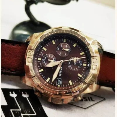 Fossil (FS5857) – Arugged yet refined timepiece with a striking brown dial, chronograph functions,and a durable stainless steel case. Paired with a premium leather strap, itblends vintage charm with modern functionality. Water-resistant for daily wear.Discover Trendy Fossil Combining Timeless Innovative Leather Strap Watches. ExploreFashion Forward Timepieces for Men and Women.