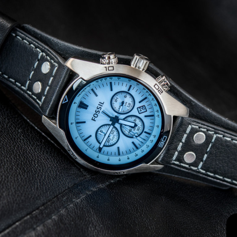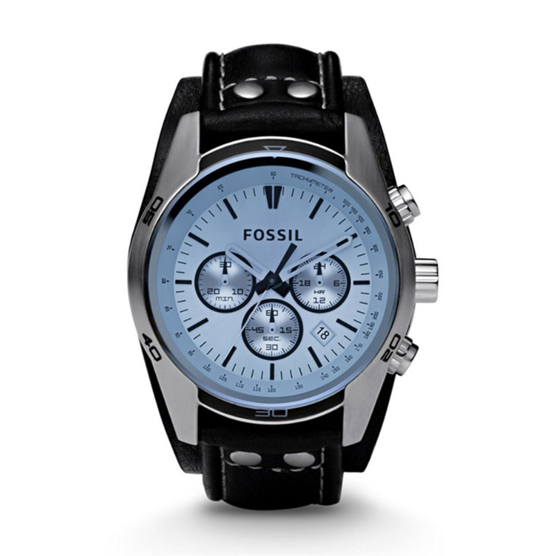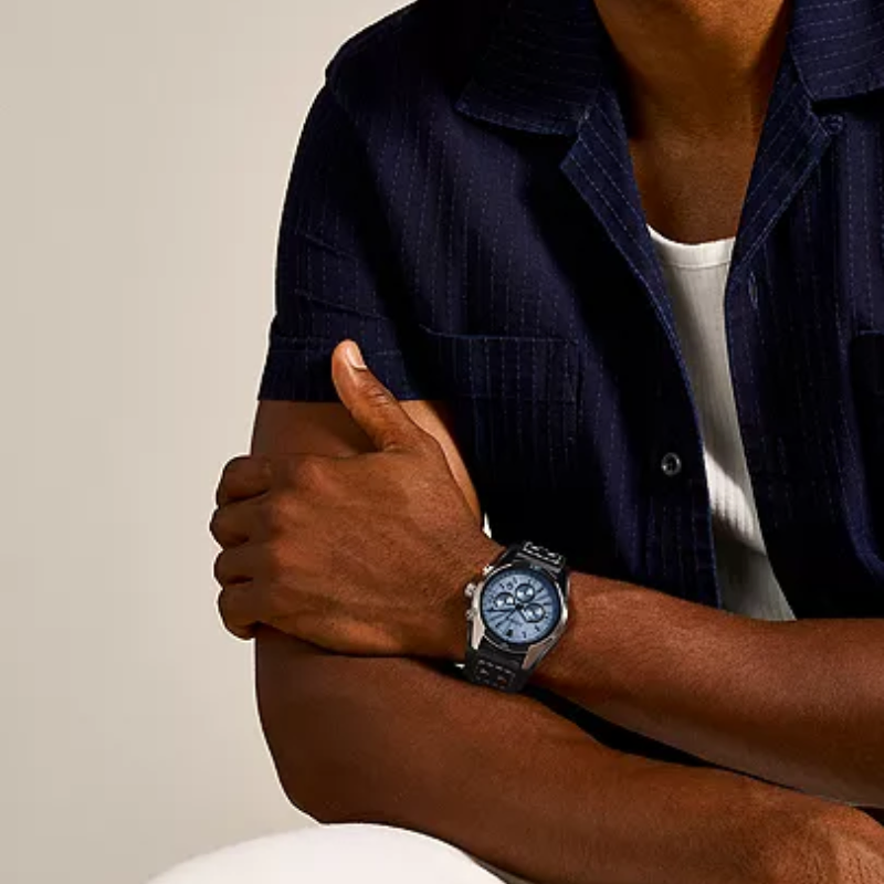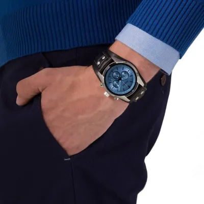 movement adds extrafunctionality. The black genuine leather strap has silver-tone stud detail andgives this watch a sporty look you'll love.