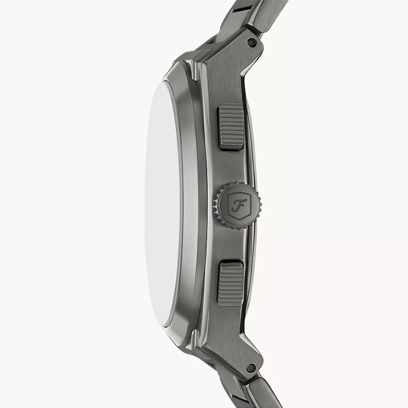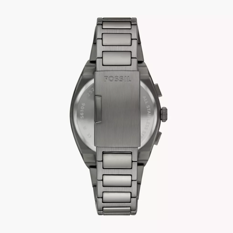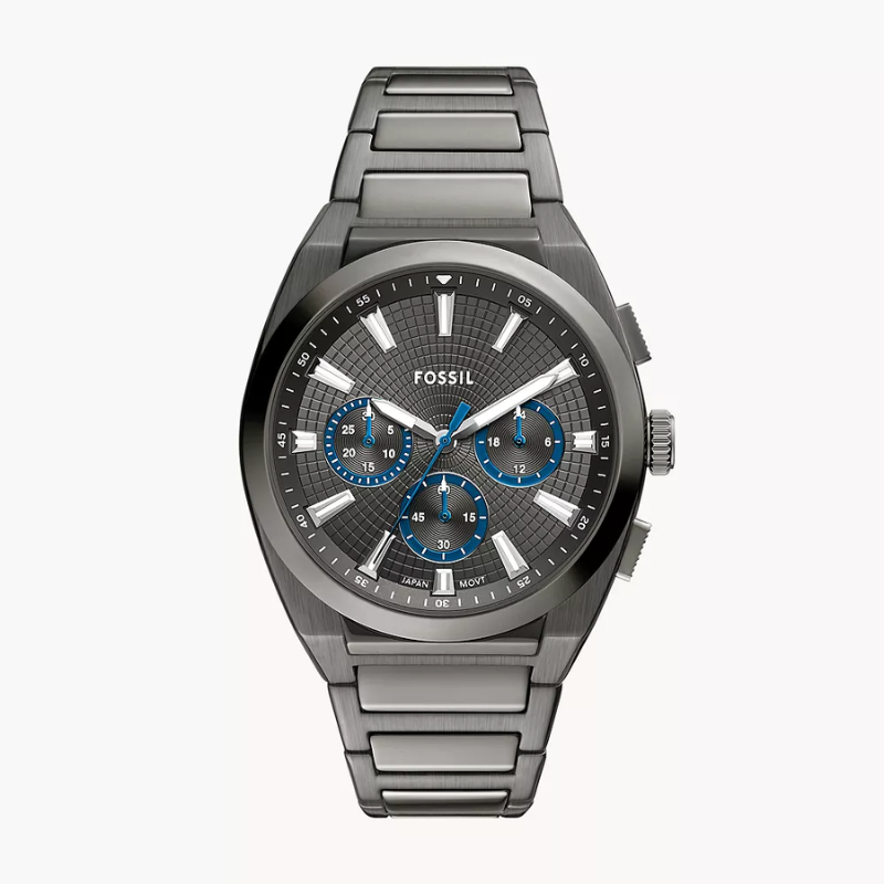 The Fossil FS6107 Everett Men’s Chronograph Watch combinesmodern style with everyday performance. Featuring a 44 mm gunmetal stainlesssteel case, textured grey dial, and striking blue chronograph sub-dials, thiswatch delivers precise quartz movement, stopwatch functionality, and 50 m waterresistance, making it a perfect choice for a bold and sophisticated look.