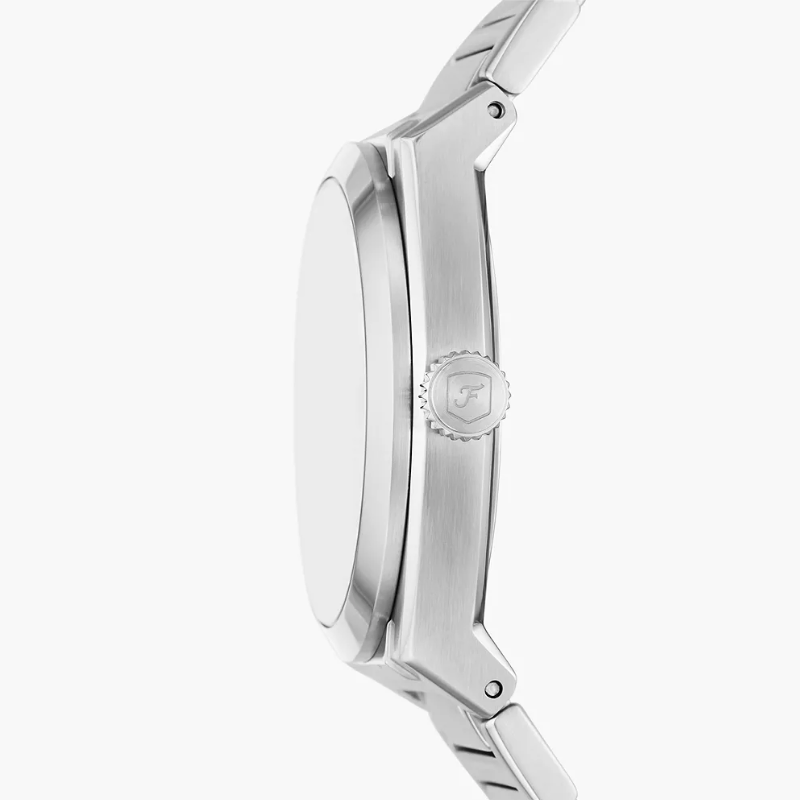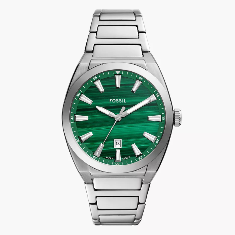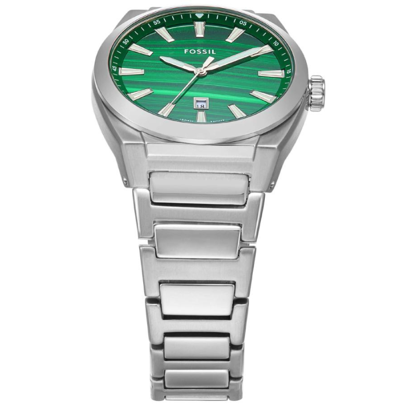The men's FossilFS6056 watch from the Everett series features a classic silver finish and a green dial, adding a unique touch. With features such as a date pad and a solid steel bracelet, this watch is ideal for men who appreciate elegance combined with practicality.