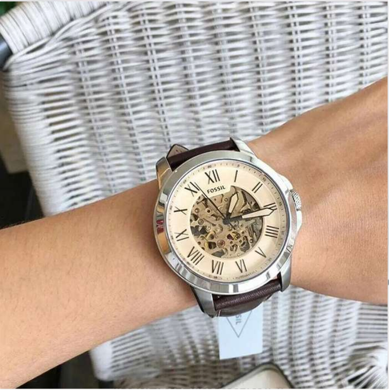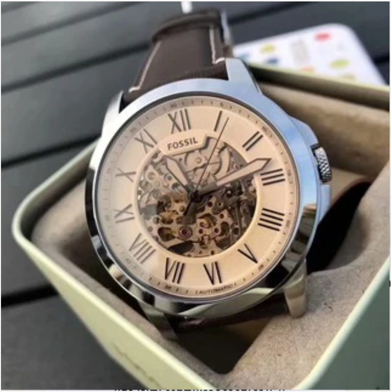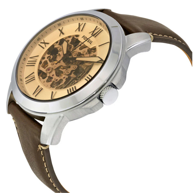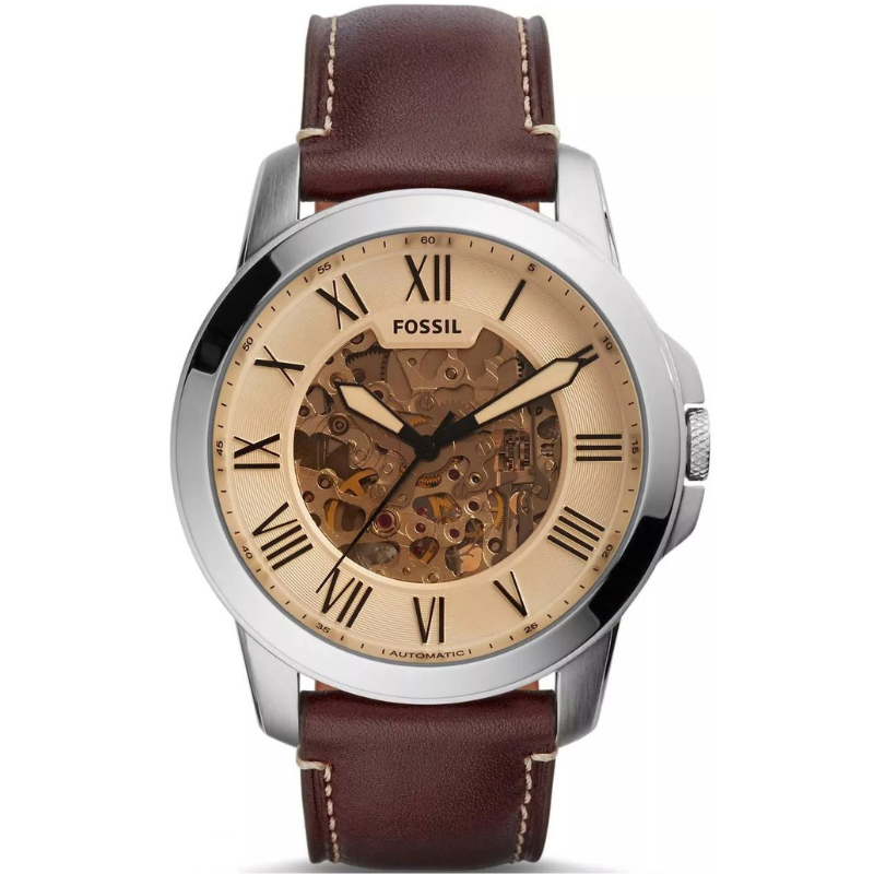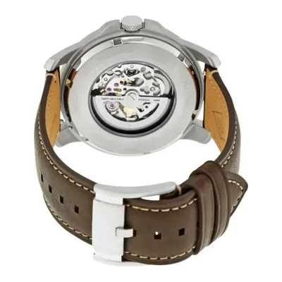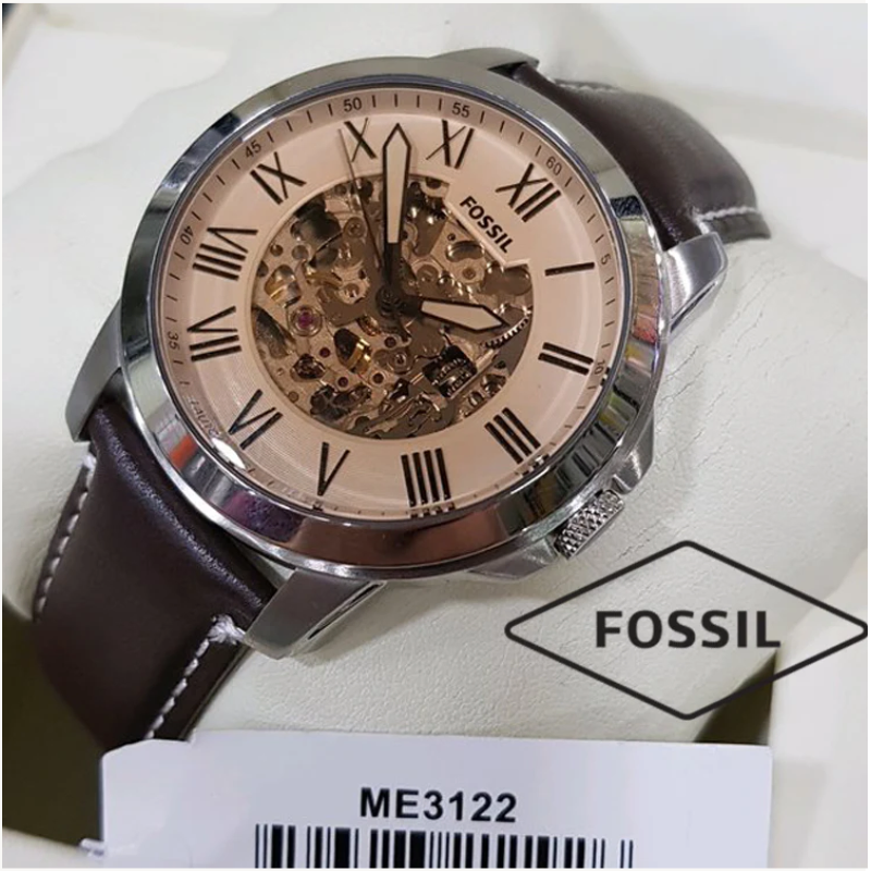 The Fossil ME3122Automatic Watch features a stylish skeleton dial with classic Roman numeral markers, a durable stainless steel case, and a genuine brown leather strap. Powered by automatic movement, this elegant timepiece combines timeless design with modern craftsmanship—perfect for everyday wear or formal occasions.