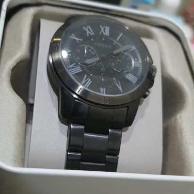 Smoke-tonestainless steel case with a black and smoke-tone stainless steel bracelet.Black stainless steel bezel. Black dial with black hands and Roman numeral hourmarkers.