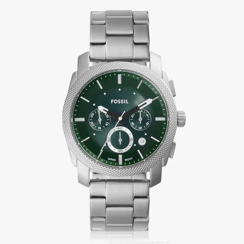 Refined,bold, and versatile — the Fossil Men’s Green Dial Chronograph Watch combinesprecision engineering with contemporary design. Featuring a deep green dial setin a stainless-steel case, this timepiece offers a striking balance of styleand function. With its chronograph subdials, date display, and textured bezel,it delivers both elegance and performance. Perfect for business attire orcasual wear, this original Fossil watch defines modern sophistication.