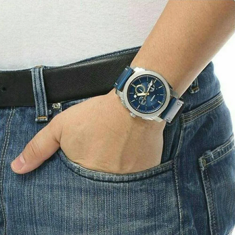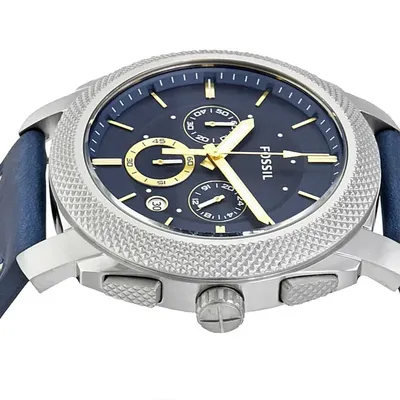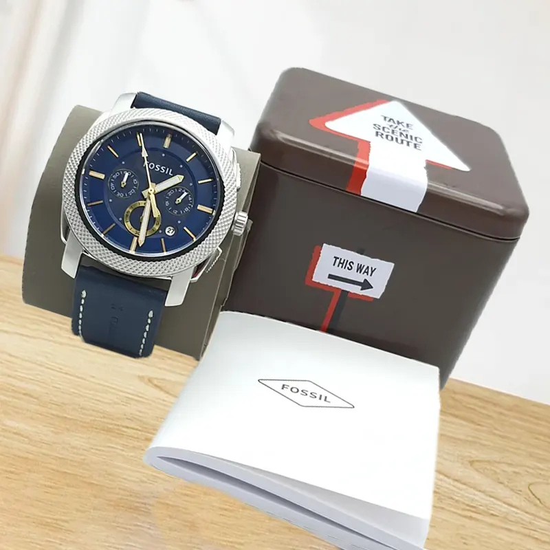 Fossil Machine Quartz Chronograph Blue Dial Men's Watch- (FS5262) boasts a striking blue dial with bold chronograph sub dials and a date display. Encased in rugged stainless-steel, it features a matching durable bracelet. A perfect fusion of industrial design and modern functionality, ideal for everyday wear or special occasions. Fossil's range of men's watches includes models for every taste, from classic to contemporary.