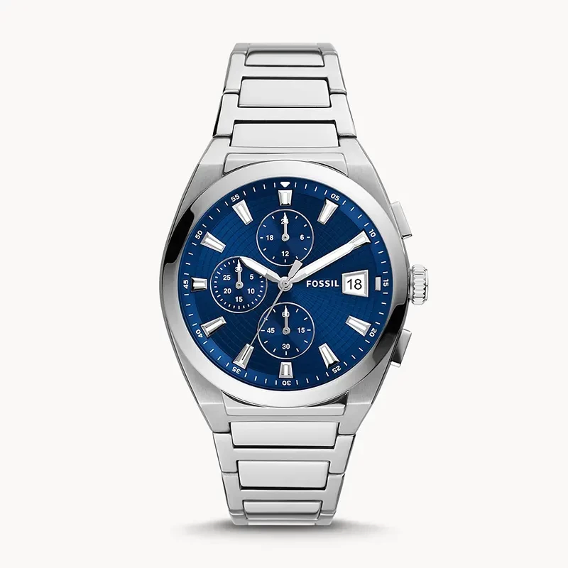 TheFossil Everett Men's Watch is a stylish and functional timepiece for casualoccasions.Stainless steel case with a stainless steel bracelet. Fixed stainlesssteel bezel. Blue dial with luminous silver-tone hands and index hourmarkers.