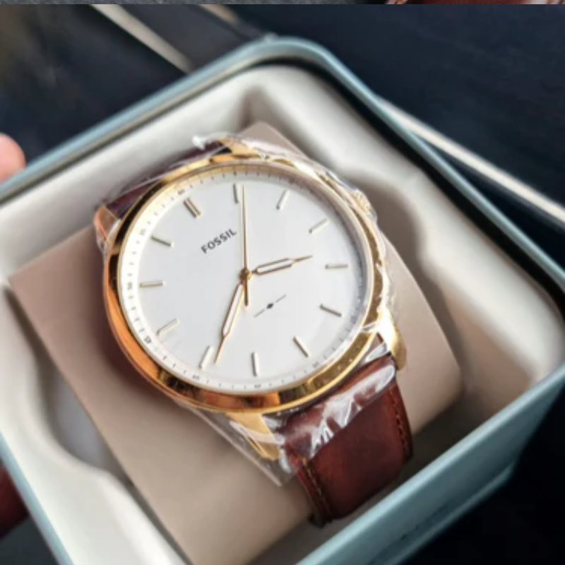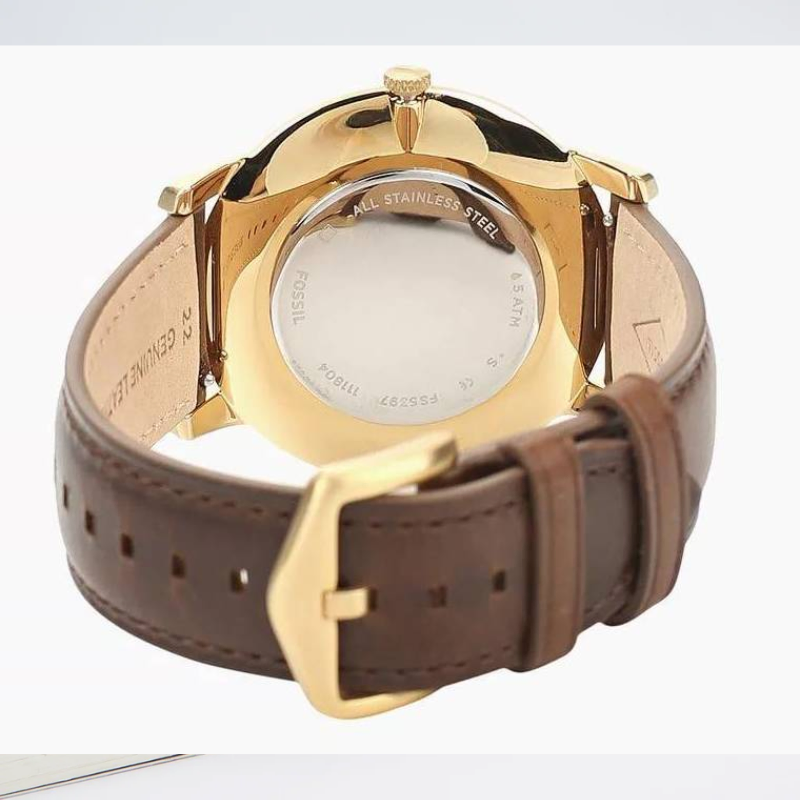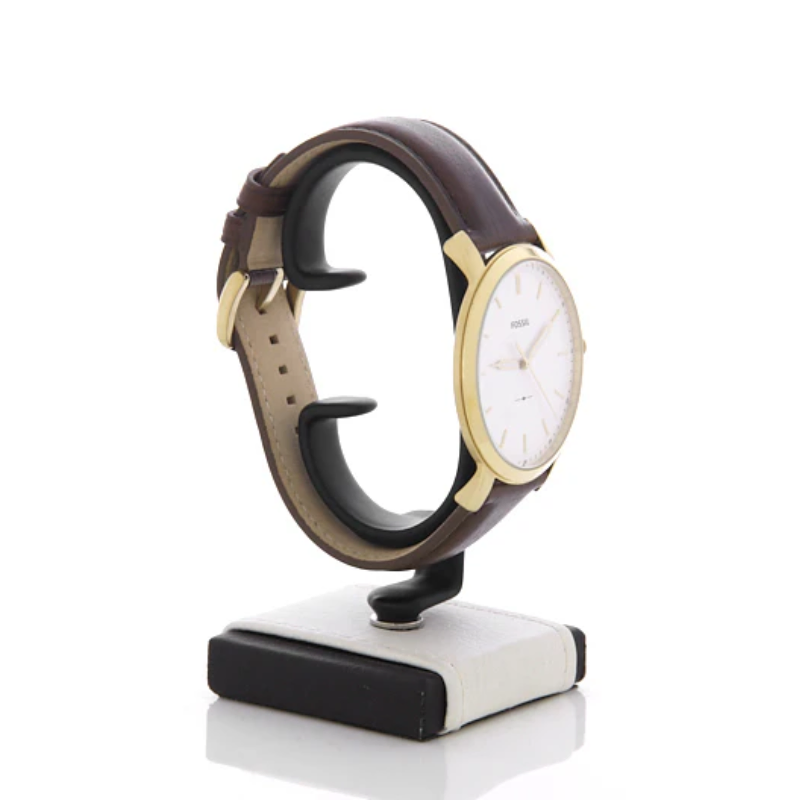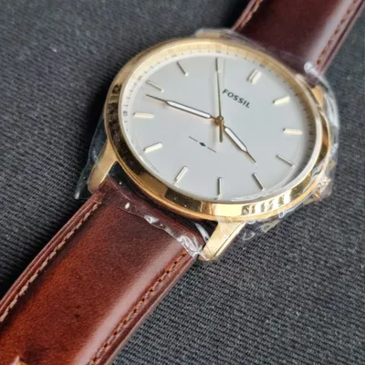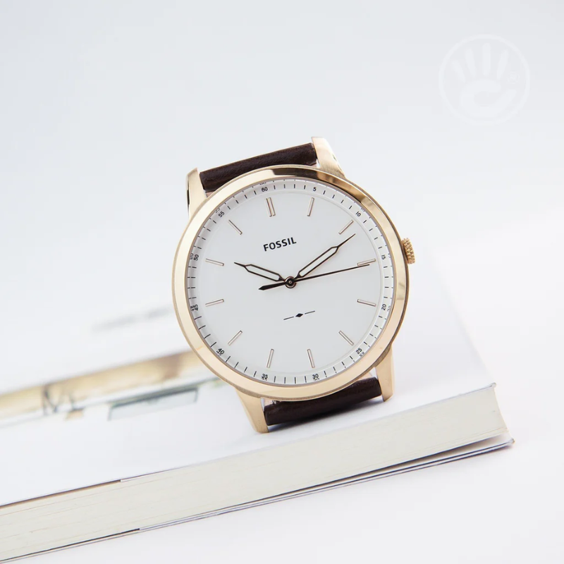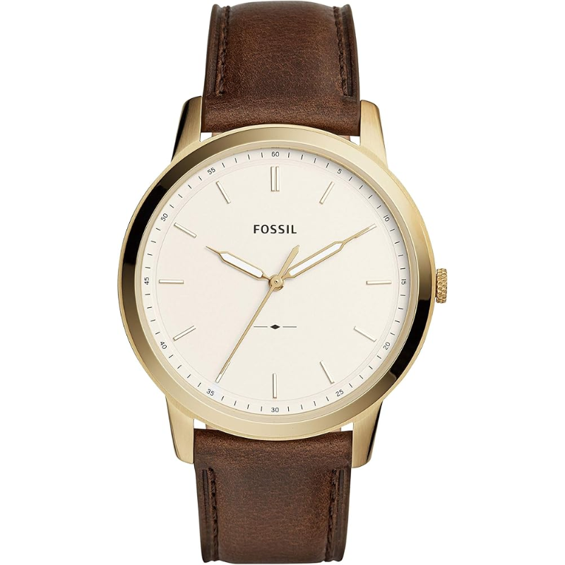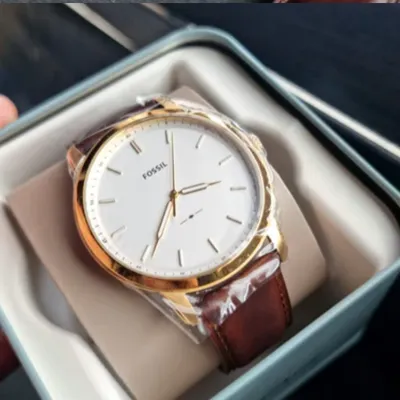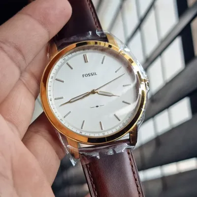 Fossil The Minimalistis a timeless and elegant watch crafted with a sleek brown leather strap anddurable stainless steel case. Featuring a clean white dial with gold-tonehands, mineral crystal protection, precise quartz movement, and 50M waterresistance, it’s the perfect blend of simplicity, luxury, and everydayreliability.
