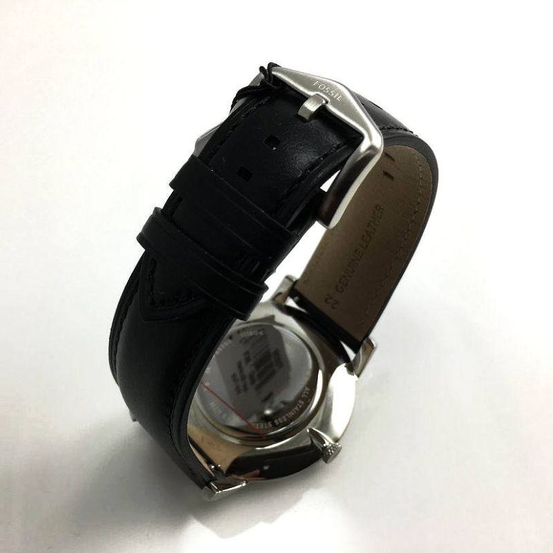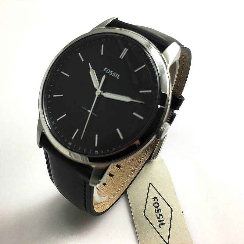 This Fossil watch foramen (model FS5398) is sleek and stylish with a black dial and black leather strap. The minimalist design offers a classic look, while the three hand feature adds functionality. Crafted with quality materials, this watch is a must-have for any modern man.