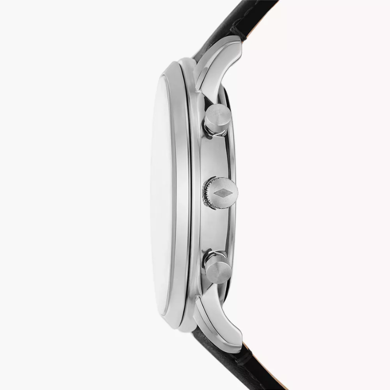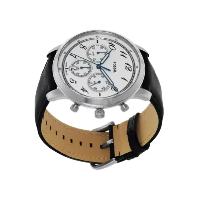 Inspired byarchitecture with its simple proportions and symmetry, this functional NeutraChronograph is refined and versatile. It features an updated numeral font,stainless steel case, white sunray dial, brown leather strap with nubuck liningand subdials for 24-hour time and stopwatch. Fossil leather products supportresponsible manufacturing via the Leather Working Group.