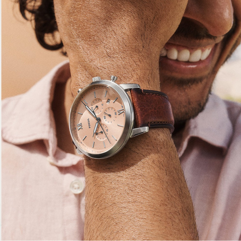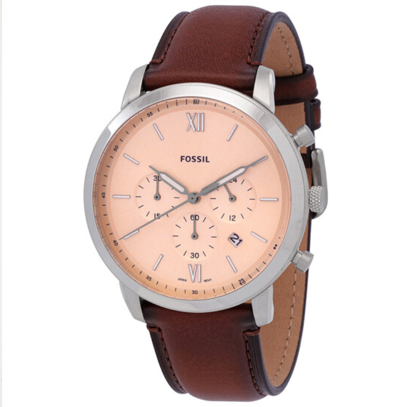Do you appreciateaccessories with a subtle color combination? Then the Fossil Neutra FS5982men's watch is just the proposition for you. The rose gold-tone dial iscomplemented by a day-of-the-month date and chronograph. The model consists ofa leather strap and a steel envelope. The device works thanks to a quartzmechanism.
