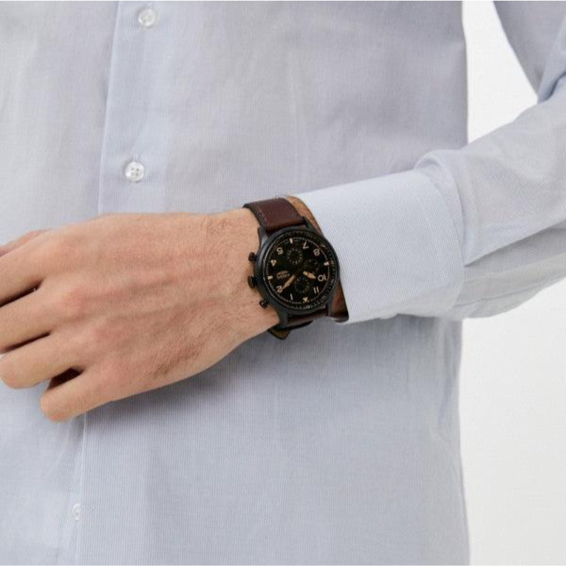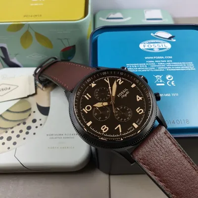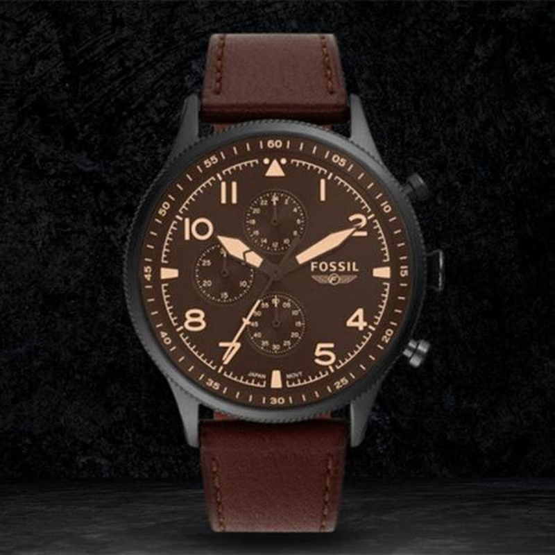 The Fossil FS5833 Men's Chronograph Watch features a classicbrown dial, black stainless steel case, and premium brown leather strap for abold vintage look. With accurate quartz movement, chronograph sub-dials, and50m water resistance, it offers both style and reliable everyday performance.
