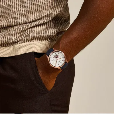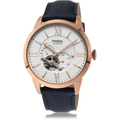 Experience timelesssophistication with the Fossil Townsman ME3171, a masterpiece that blendsclassic design with modern craftsmanship. Featuring an elegant rose gold-tonecase, open-heart dial, and deep navy leather strap, this watch perfectlyreflects the art of precision engineering and effortless style.