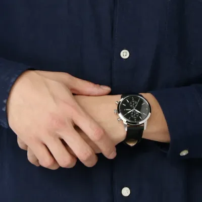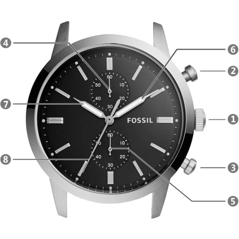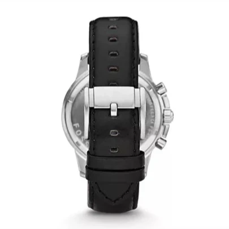 Fossil FS-5396Multi-Function Men Watch. The case is made out of silver stainless steel with a silver bezel, which stands for the high quality of the item; it has a black color dial. This model has got 50 meters of water resistance. it can be worn in scenarios where it is likely to be splashed but not immersed in water and will be fine in rain.
