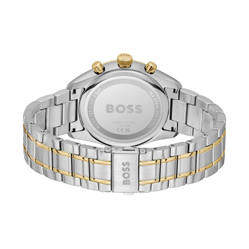Introducing the BOSSGrand Prix 44mm Gents Watch 1514227, a sophisticated timepiece tailored formodern men. This impressive watch features a quartz movement, ensuring precisetimekeeping. The striking green dial is marked with batons, offering a stylishyet clear display. It includes a date feature, enhancing its practicality foreveryday wear.
