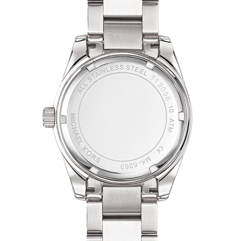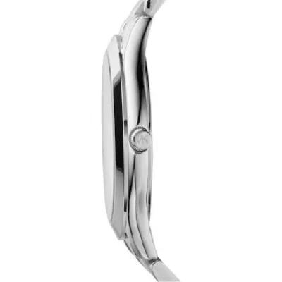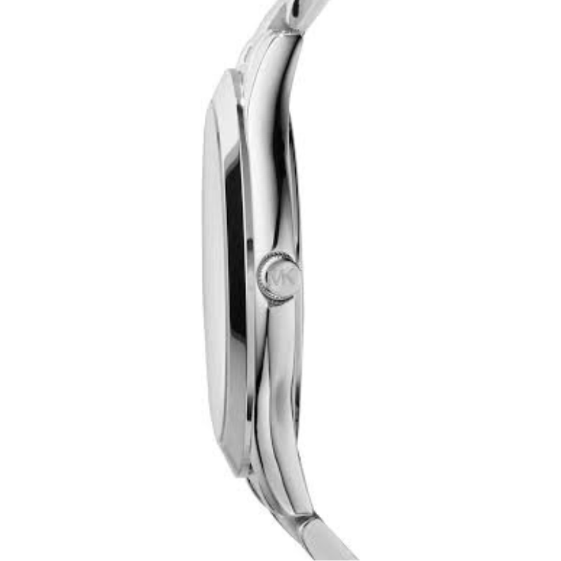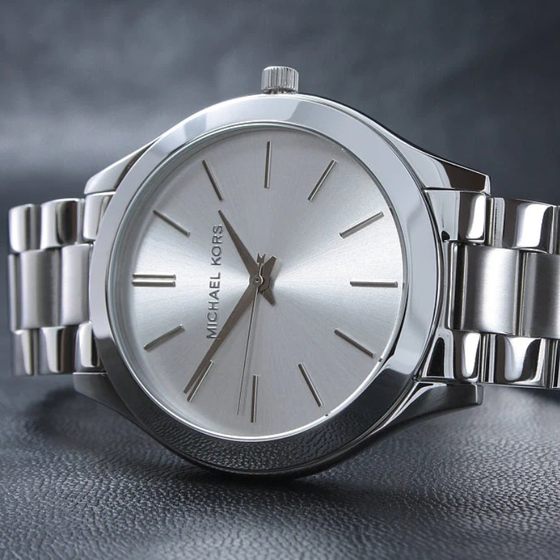 The Michael Kors Runway Women's Fashion Watchcombines style and reliability, featuring a silver stainless steel case andbracelet, a scratch-resistant mineral crystal, and a dependable quartzmovement. With 50m water resistance, it handles splashes with ease. It comes inoriginal packaging with a manufacturer’s warranty.