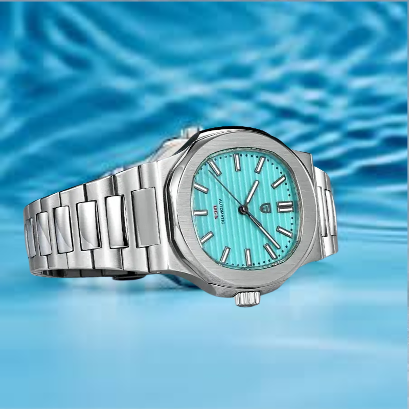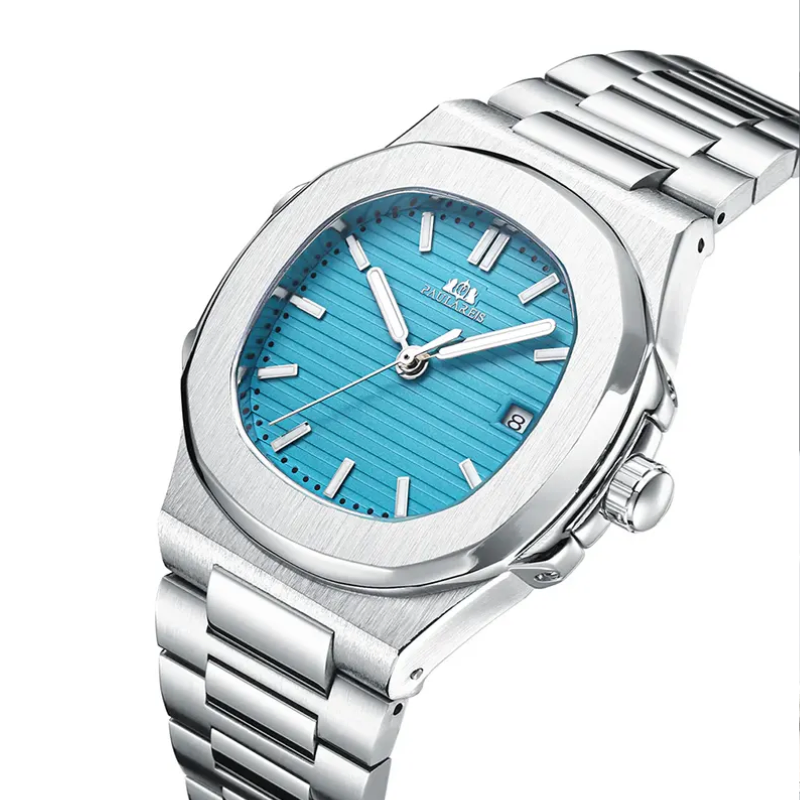 Pagani Design PD-1728 men’s automatic watch with Tiffany Skyblue textured dial, stainless steel case and bracelet, sapphire crystal, and asleek everyday luxury design.