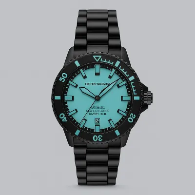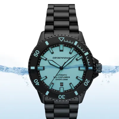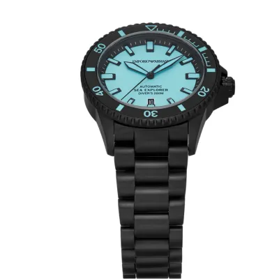 TheEmporio Armani Sea Explorer AR60084 men's watch is a unique model that combinesmodern design with functionality. It is powered by an automatic movement, andthe 42 mm wide zeze stainless steel envelope in a classic black color gives ita modern touch. The blue dial, covered with mineral glass, contrasts with thedark envelope, creating a striking look. The black stainless steel bracelet,perfectly harmonizes with the whole, adding elegance. In addition, the devicehas a date display, which indicates the day of the month. The product iswaterproof to 200 meters, making it suitable for swimming and scuba divingwithout an aqualung.