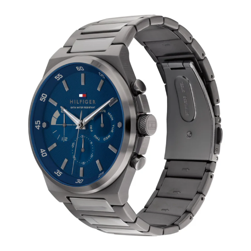 ThisTommy Hilfiger watch has a case made of stainless steel with a diameter of 46mm and is fitted with a metal band. Inside the case lies a Seiko InstrumentsInc. movement and the watch features a Mineral crystal.