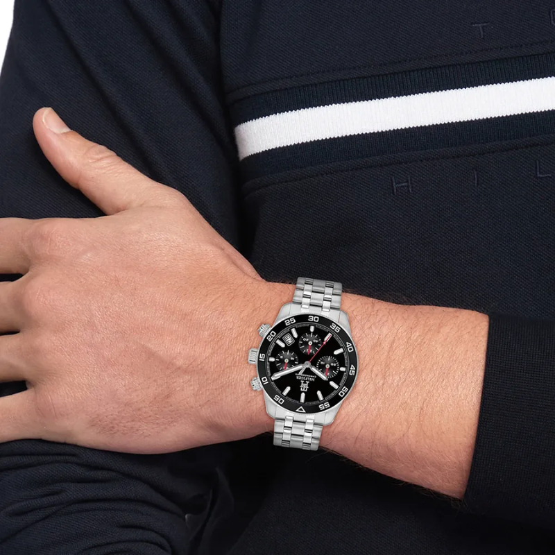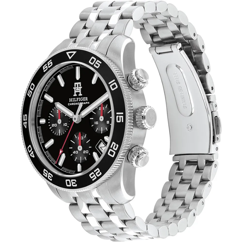 Elevate your stylewith the Tommy Hilfiger Chronograph Men’s Watch — a bold fusion of moderndesign and timeless elegance. Featuring a sleek black dial with multifunctionchronograph sub-dials, stainless steel bracelet, and a sturdy stainless steelcase, this watch offers both durability and sophistication. With luminoushands, precise quartz movement, and water resistance, it’s designed for men whovalue performance as much as style. Whether for work, travel, or specialoccasions, this timepiece is more than just an accessory — it’s a statement.