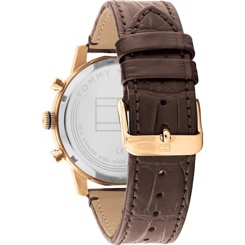 This TommyHilfiger Men's Quartz Brown LeatherWatch is designed with style and functionality in mind. Its classic brownleather strap, stainless steel case, and mineral crystal display make it bothstylish and functional. Its quartz movement ensures accuracy and reliability.