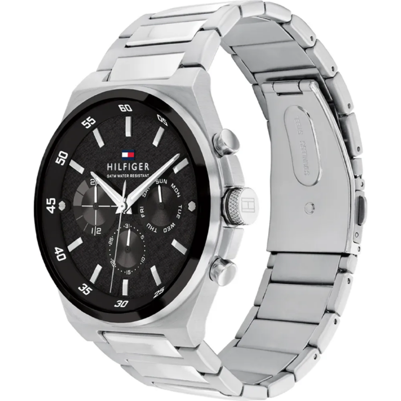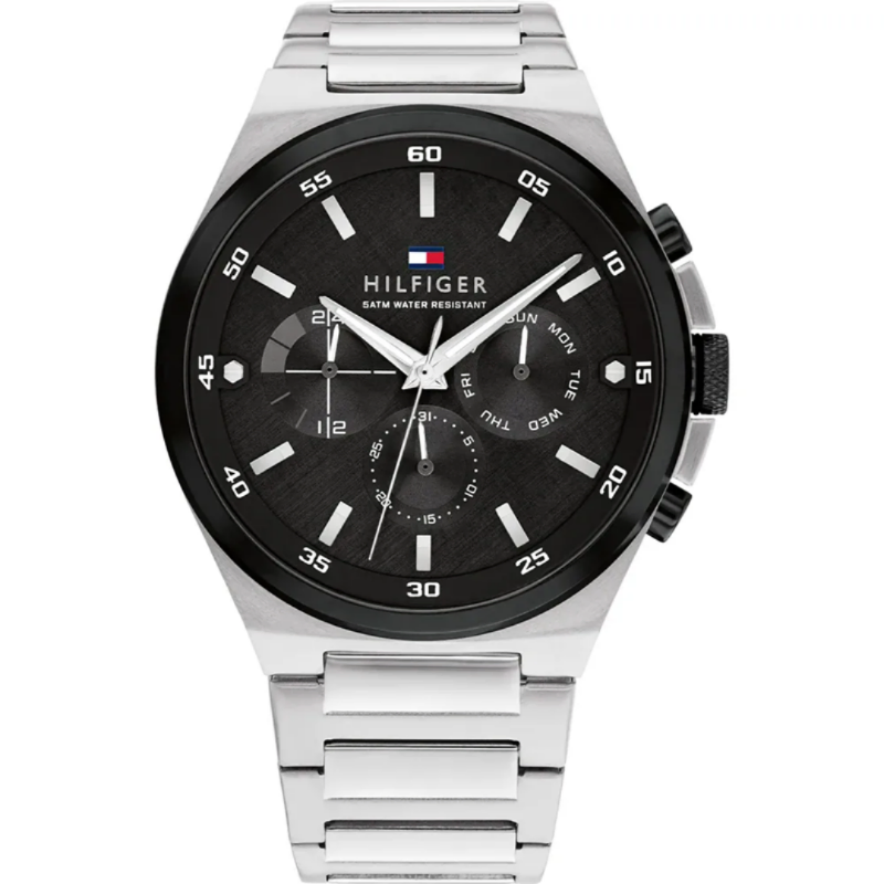 ThisTommy Hilfiger watch has a case made of stainless steel with a diameter of 46mm and is fitted with a metal band. Inside the case lies a Seiko InstrumentsInc. movement and the watch features a Mineral crystal.