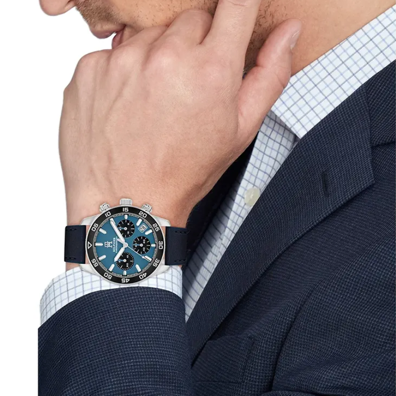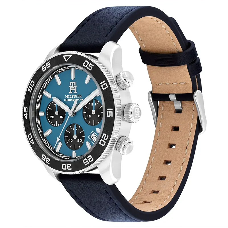 Tommy Hilfiger1792187 – Bold style meets function. Featuring a 41mm stainless steel case, quartz movement, blue dial, leather strap, and 5 ATM water resistance, this chronograph is built for fashion-forward individuals