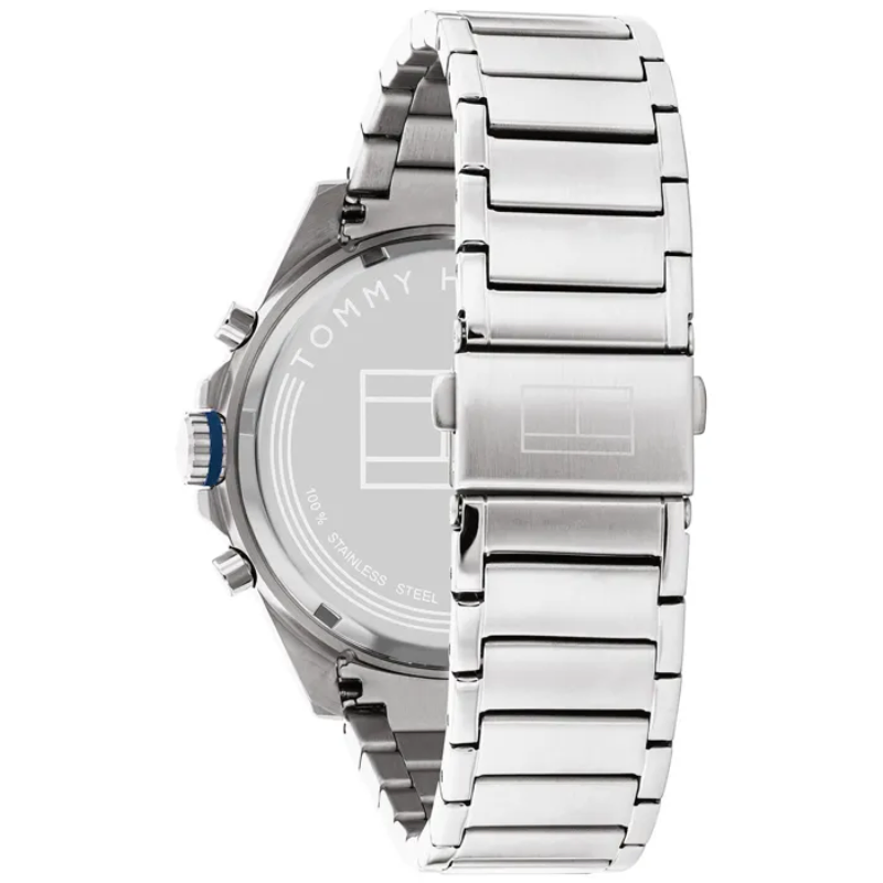 Make a statement with the Tommy HilfigerHorloge Heren Blue Dial Stainless Steel Watch. Crafted with precision and stylein mind, this watch features a bold blue dial and sleek stainless steel design.Keep time with luxury and sophistication.