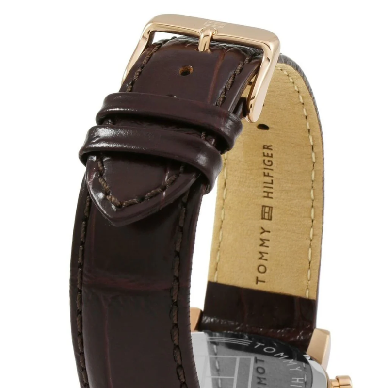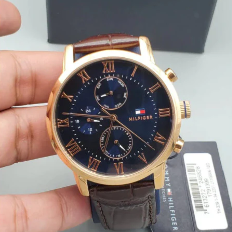TommyHilfiger Chronograph Blue Dial Men's Watch 1791399 is an amazing and specialGents watch. Material of the case is PVD rose plating, which stands for a highquality of the item while the dial color is Black. The features of the watchinclude (among others) a chronograph and date function.