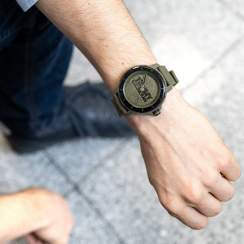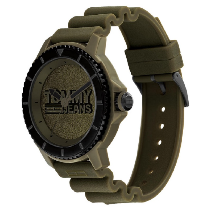 Decorated with a stunning greenTr90 case and a green silicone strap, this quartz-powered timepiece offersexquisite style in a 45 mm wide and 10.4 mm thick design. The crystal mineraldial boasts a green hue and a logo index, and its water resistance of up to 3atmospheres ensures its durability. The tongue buckle clasp ensures a securefit.